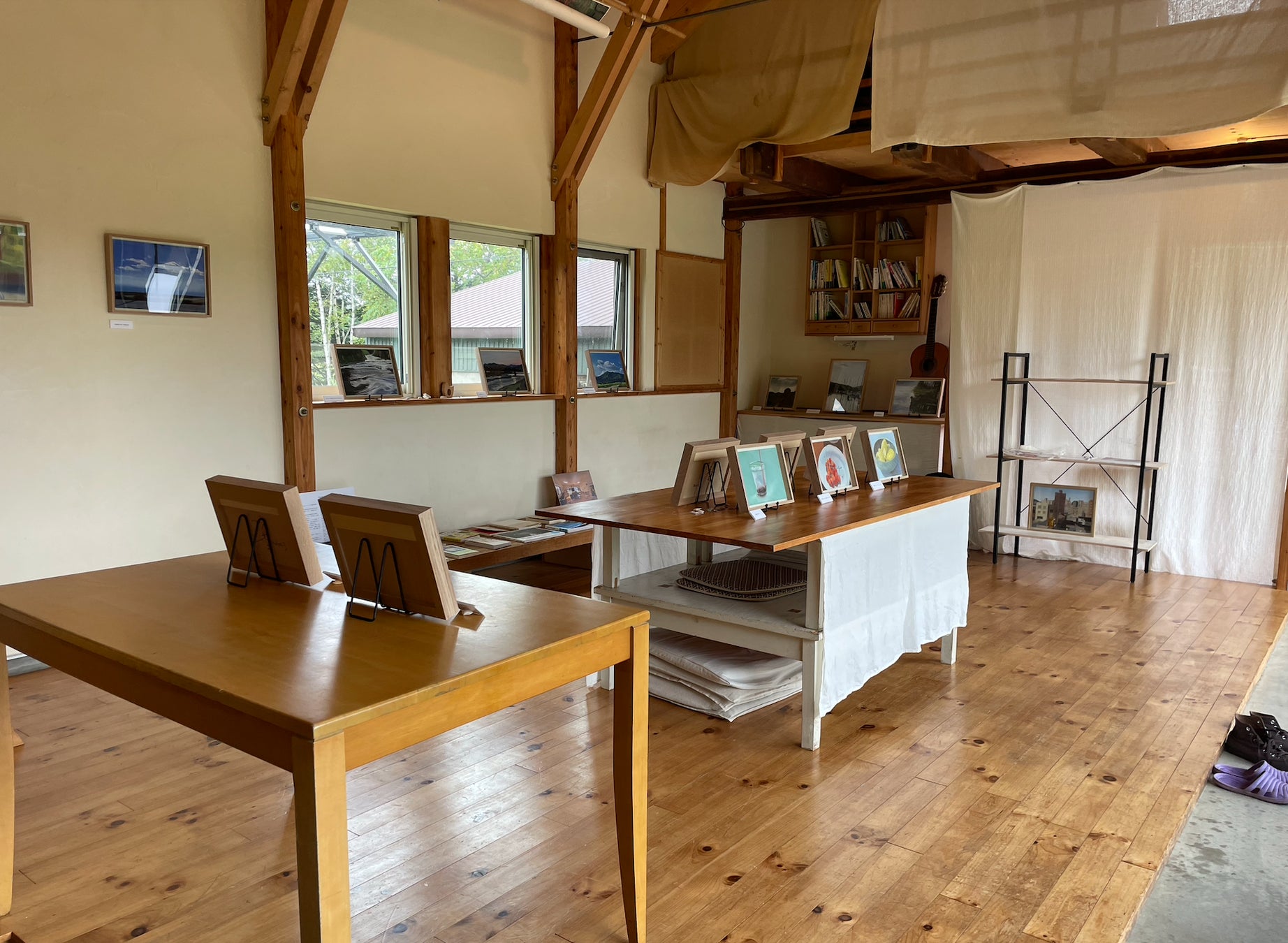会場選びでは相棒のおせんちゃんと、一緒に余市の町を歩き回りながら候補地を探しました。最終的に坂口さんともXスペース上で相談し、余市エコビレッジに決定。その過程のやりとりは楽しいものでした。作品準備では、会場のサイズに合わせて坂口さんに選定して頂き、事前のレイアウト設計と什器の手配を行いました。 展示作業は前日夜に2名で行いました。前日の緊張と準備の疲れがピークに達する場面もありましたが、何とか完成させました。