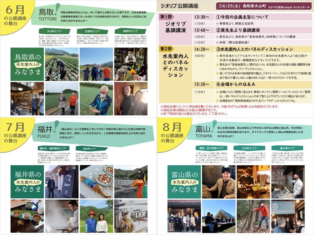 「地域ものがたるアンバサダー~美食地質学×第2のふるさとを巡る旅~」のキックオフにあたり、「ジオリブ公開講座」を開催します。(JR西日本×富山県・福井県・鳥取県共同)