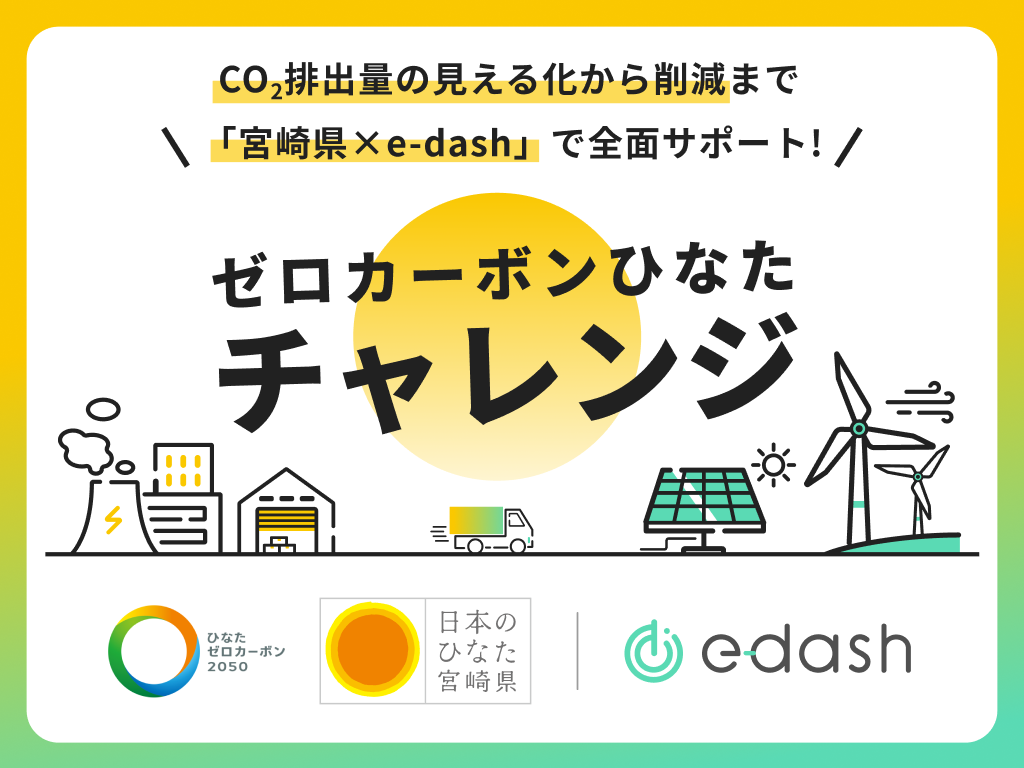 「e-dash」が宮崎県の委託を受け、県内50社のCO2排出量可視化から削減までをトータルサポート