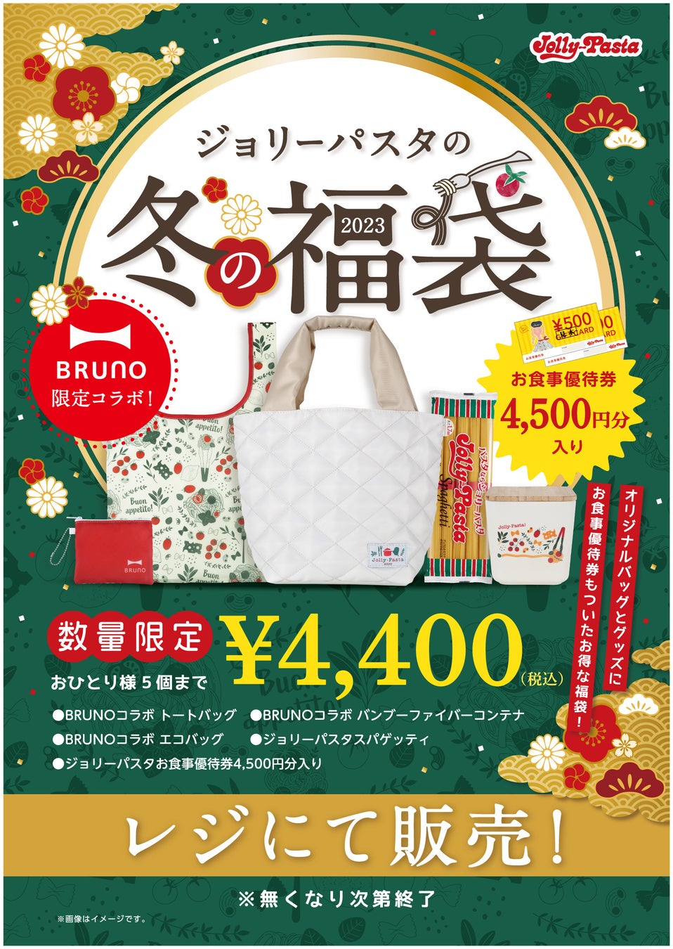 【ジョリーパスタ】「ジョリーパスタの冬の福袋2023」販売決定!ジョリーパスタとBRUNOがコラボした冬の福袋を12月14日(水)より店頭にて販売!