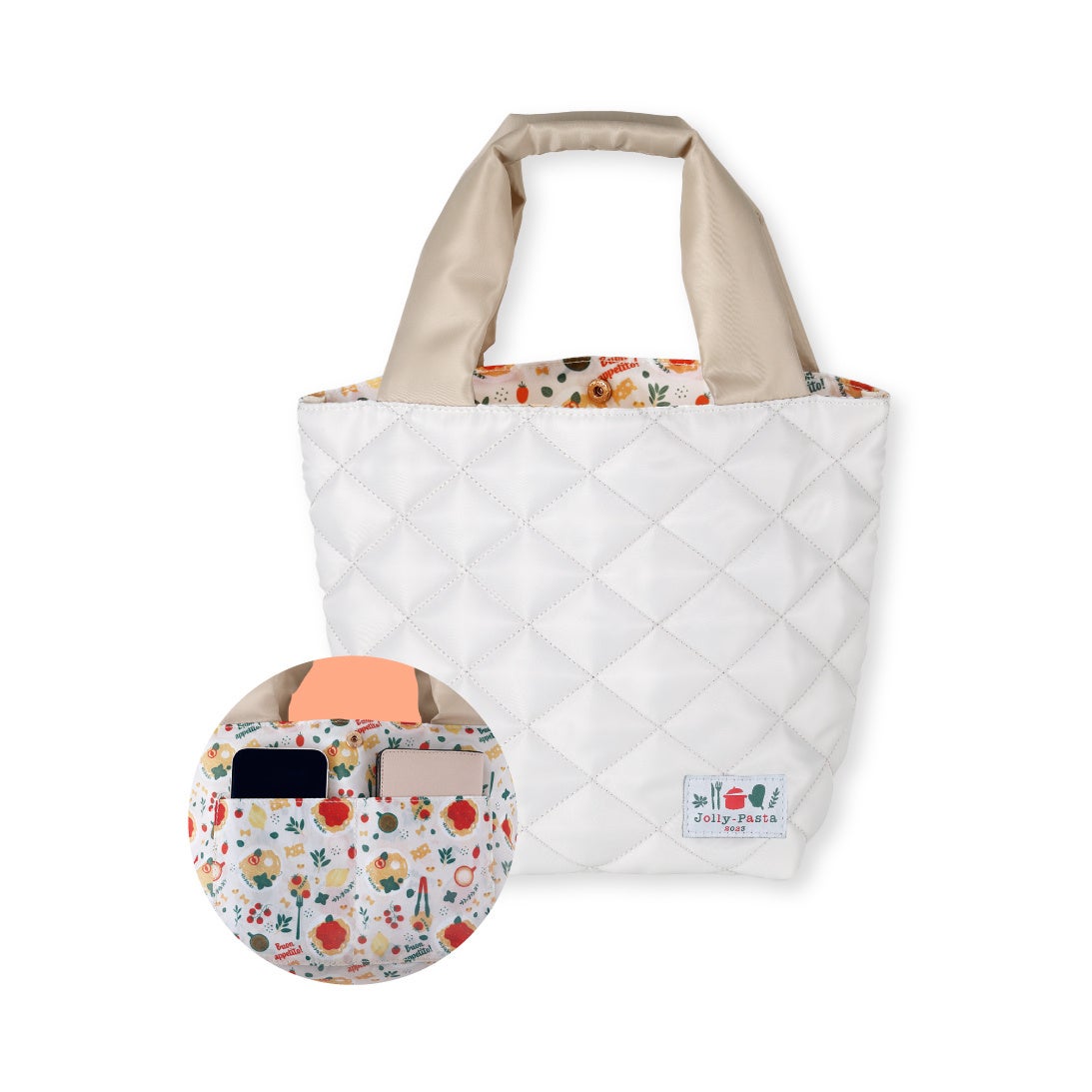トートバッグの内生地とおそろいの、おしゃれなパスタ柄のエコバッグです。