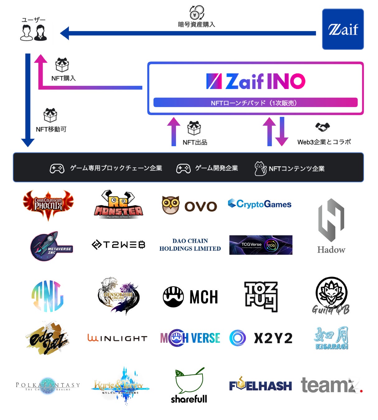 当該「Zaif INO」ローンチパッド(1次販売)では、様々なWeb3企業とのコラボレーションを予定しています。NFTを出品するゲーム開発企業など、決定次第、発表してまいります。