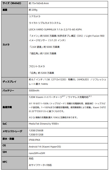 キャンペーン詳細について:https://www.mi.com/jp/event/xiaomi-14t-pro-campaign