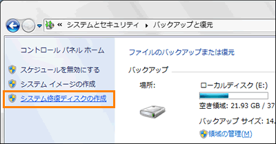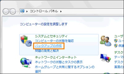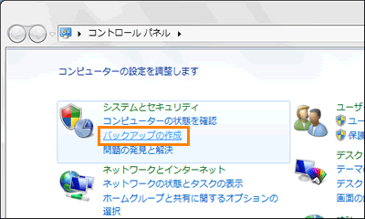 Step2:システムとセキュリティ内の「バックアップの作成」をクリックします。