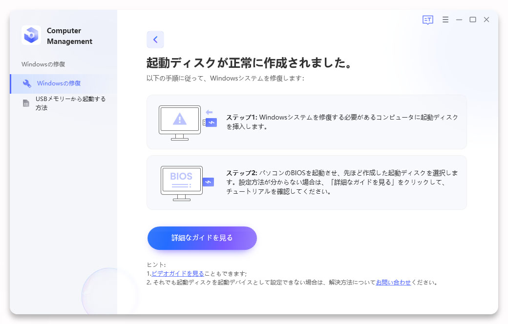 PassFab Computer Managementは画面の説明を見ながら簡単な操作をするだけで修復ディスクが作成できる、使いやすい専門ツールです。Windowsの修復、データの復元、パスワードのリセットなど役立つ機能が揃っているため、様々な場面でお使いいただけるでしょう。