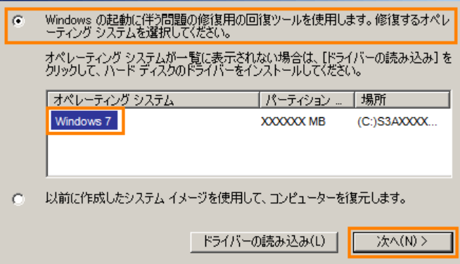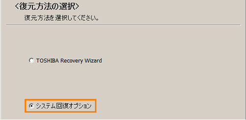 Step3:復元方法の選択の画面が表示されたら「システム回復オプション」を選んで「次へ」をクリックします。