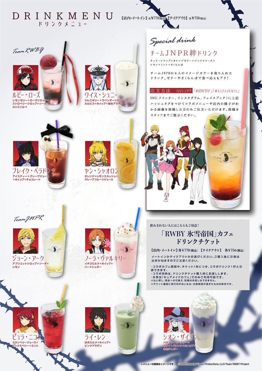 見て、味わって、コラボカフェで『RWBY 氷雪帝国』の世界観をぜひご堪能くださいませ。