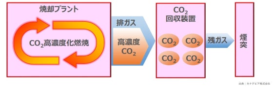 ※大幅に増加させた再循環ガスに酸素を加えて廃棄物を燃焼させることで燃焼排ガス中の窒素分が低減され、結果として燃焼排ガス中CO₂濃度が従来よりも大幅に向上することが期待されます。