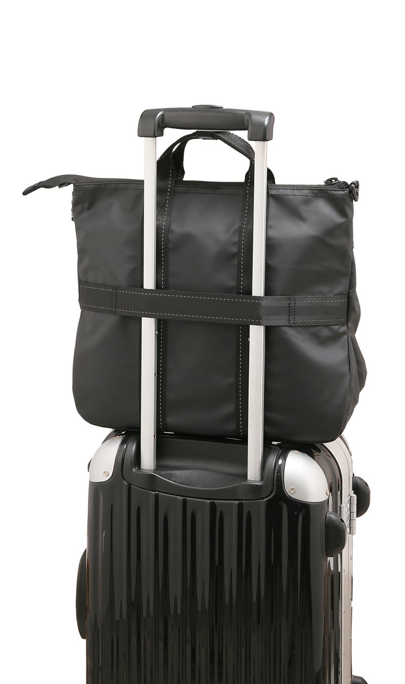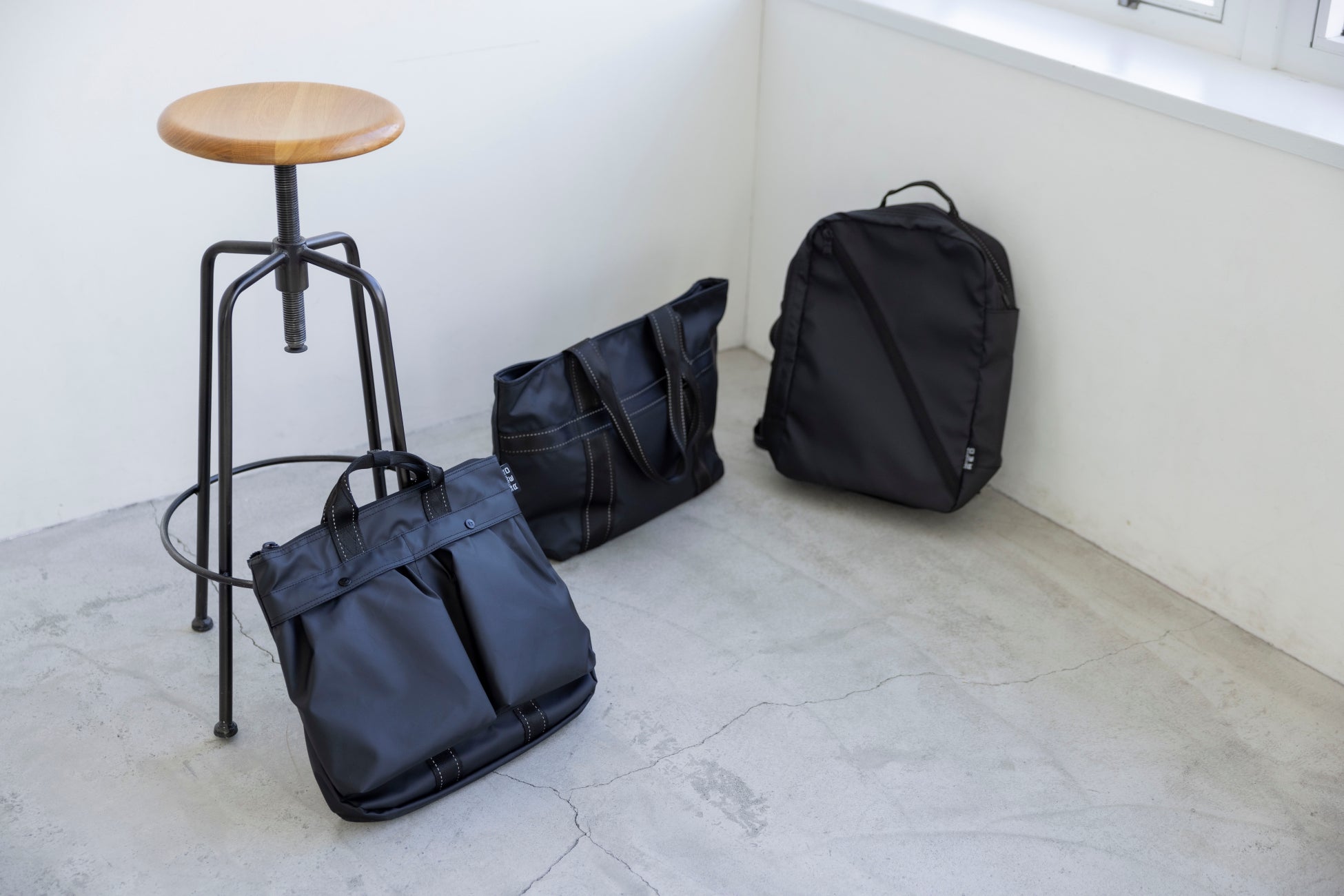 同素材のトートバックと2WAYバックパックを展開。それぞれフロントには斜めのジップポケットを用意しており、肩掛け(トートバッグ)・前持ち(バックパック)でも物が取り出しやすい仕様にしています。シンプルなデザインが、仕事でもプライベートでも使い回ししやすいバッグとなっています。