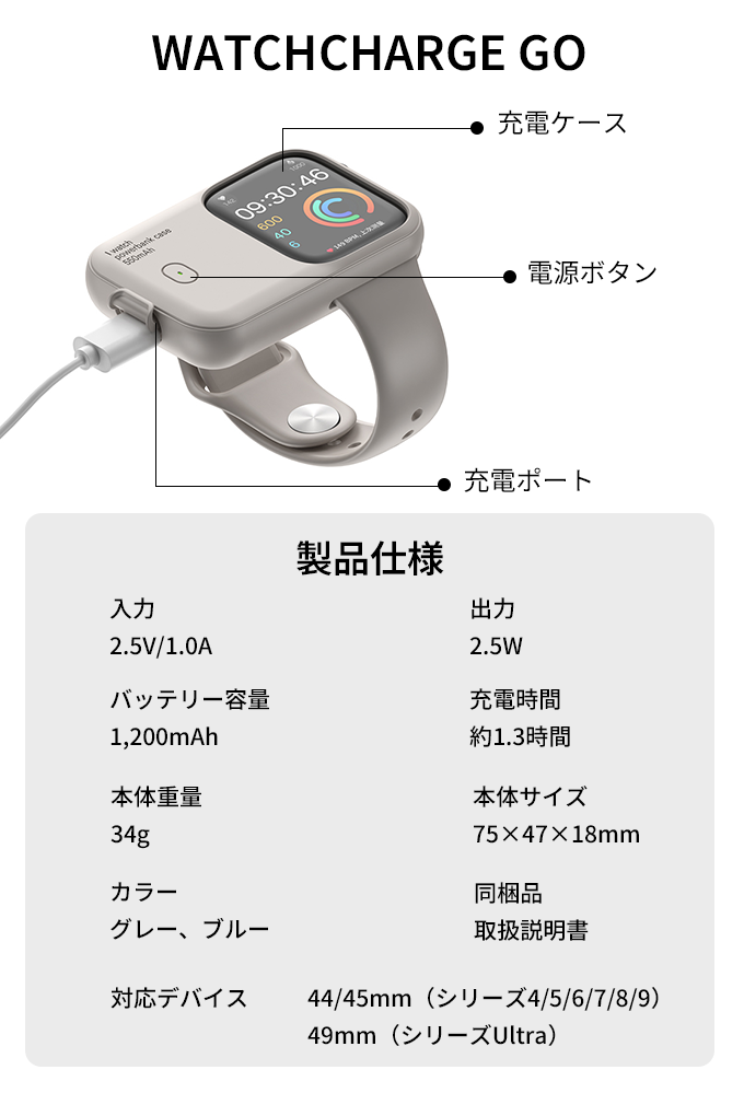 WATCHCHARGE GOは、Apple Watchユーザーの日常生活に革命をもたらす理想的なパートナーです。