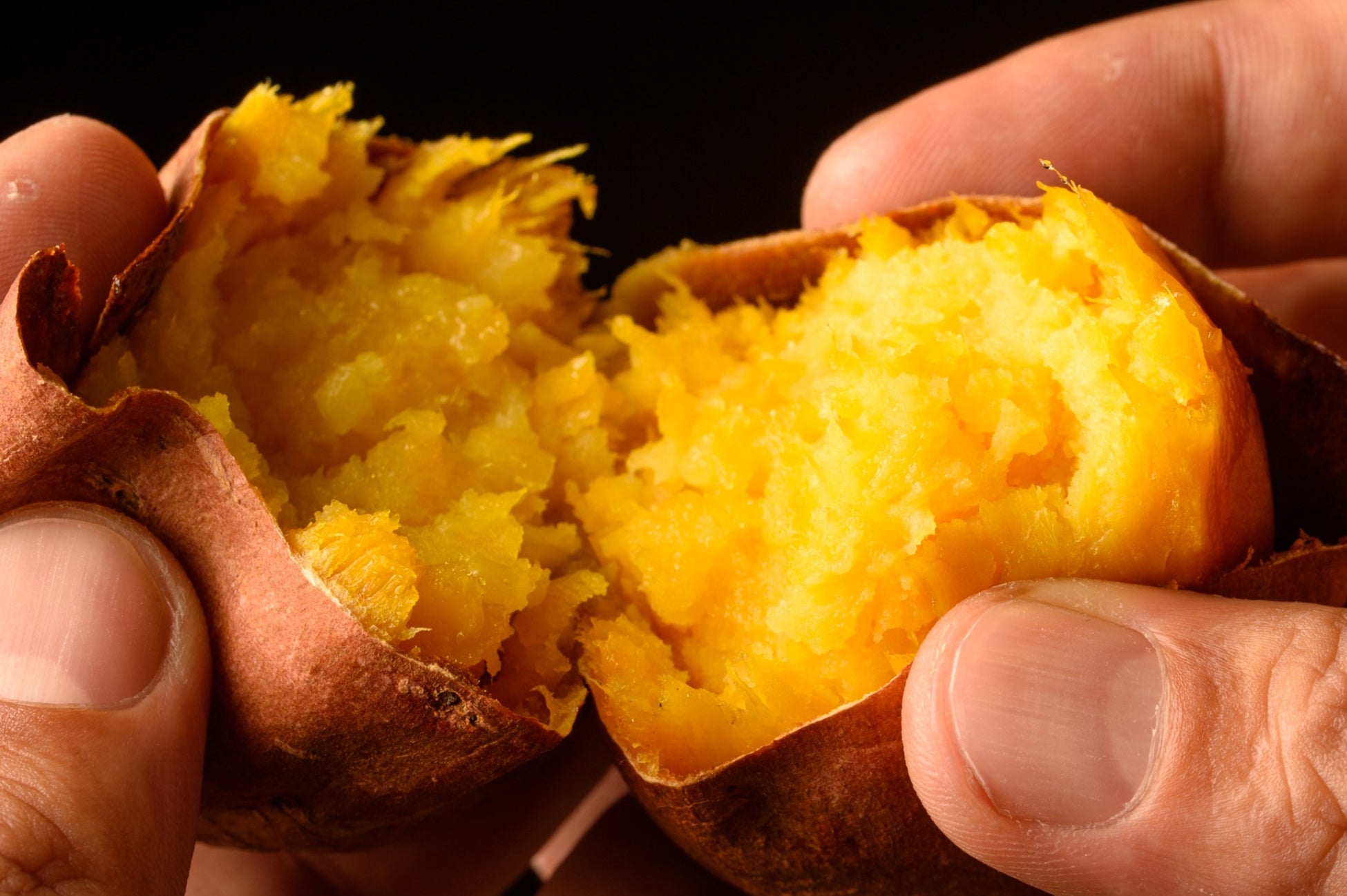 安納芋の最大の特徴は、高い糖度とねっとりとした独特の食感。ほかのサツマイモと比較して2倍以上含有するショ糖を含有するほか、オクラや山芋にも含まれる多糖類を多く含んでいます。