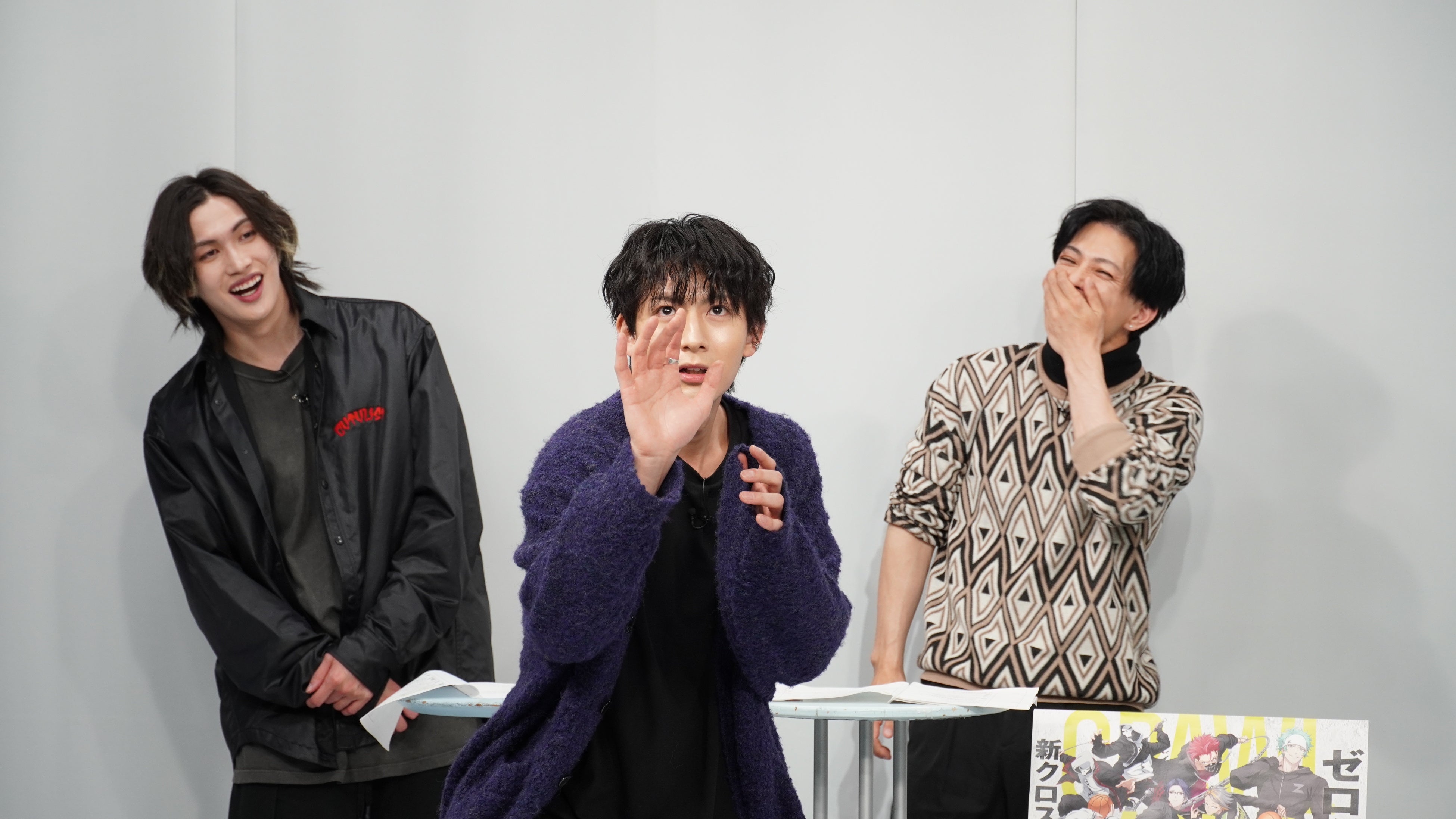 観劇前に必見の、物語の中で4チームに分かれるキャスト陣が各チームの特徴や関係性を紹介するコーナーにはじまり、「ZERO RISE 人間性、指差し確認」と題し、「メンバーで一番頼りになるのは?」「一番ギャップがあるのは?」などの質問に直感で答えるトーク企画では、キャスト同士の関係性や素顔に迫ります。