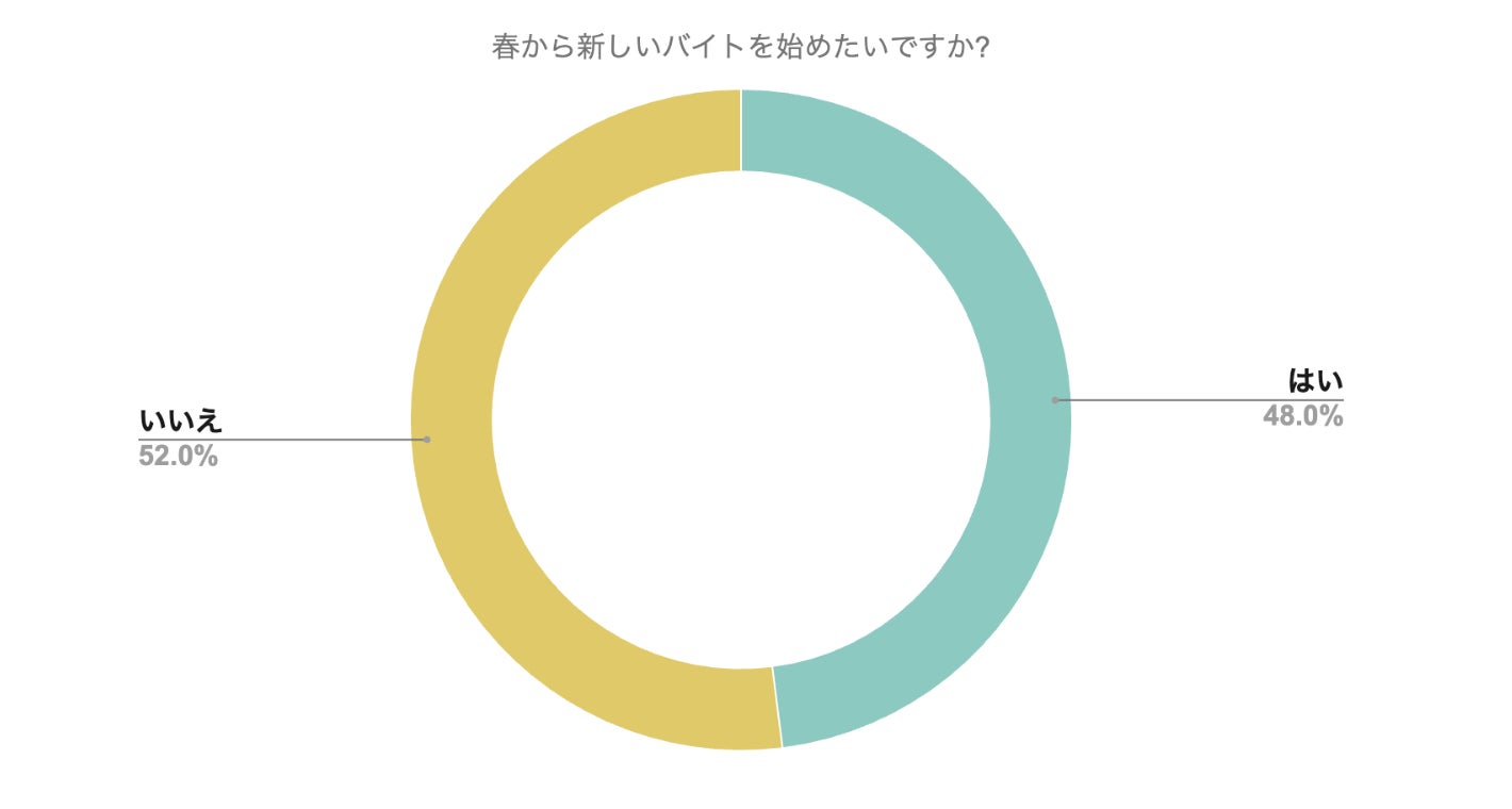 ・春から新しいバイトを始めたいですか?という質問では、「はい」と回答した方が48%だった