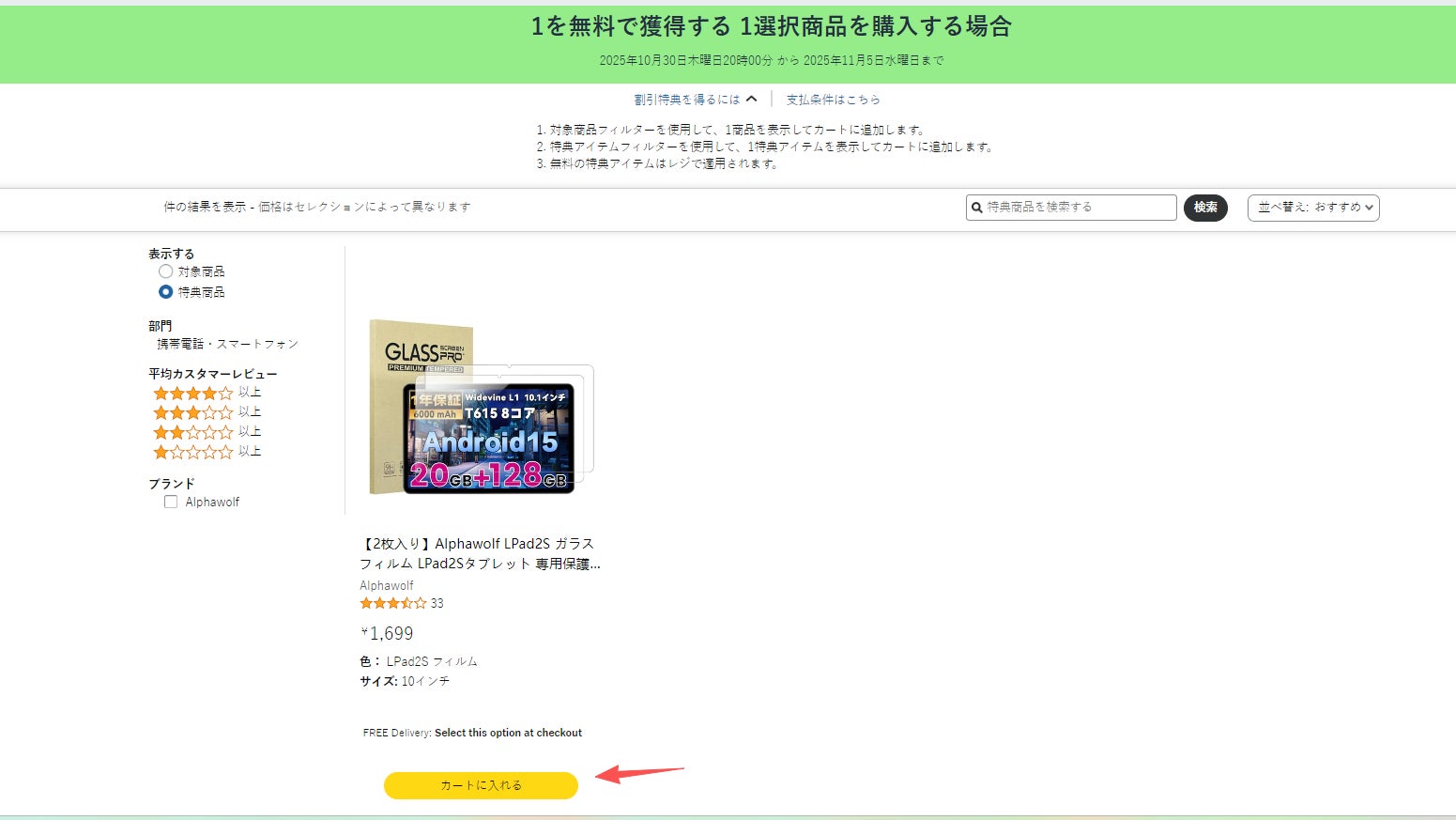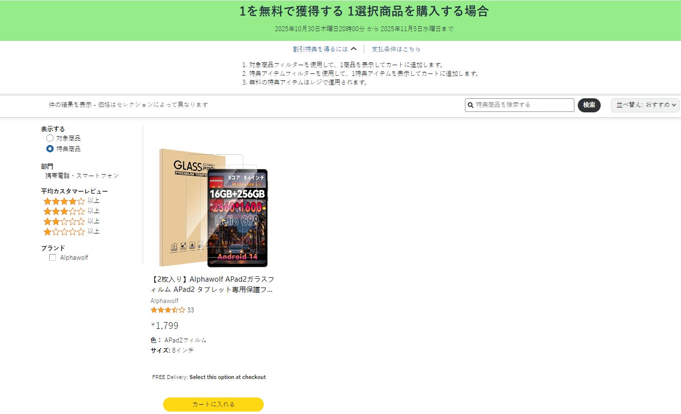 期間限定特典:1699円のガラスフィルムを無料で獲得する