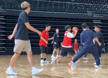 群馬県立高等特別支援学校高校生26名と太田特別支援学校小中学生13名が4つのチームに分かれてミニゲームを実施。プロバスケットボール選手と一緒に同じコートでボールを追いかけた後、谷口選手による3ポイントシュート企画をコートサイドから全員で応援。ゲームに参加して汗をかき、そして応援して楽しむ「バスケットボール体験型イベント」を実施。