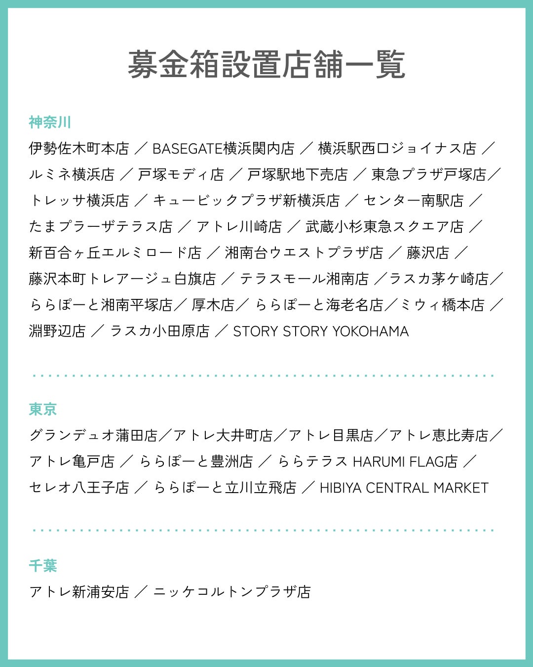 ※有隣堂(36店舗)、STORY STORY YOKOHAMA、HIBIYA CENTRAL MARKET
