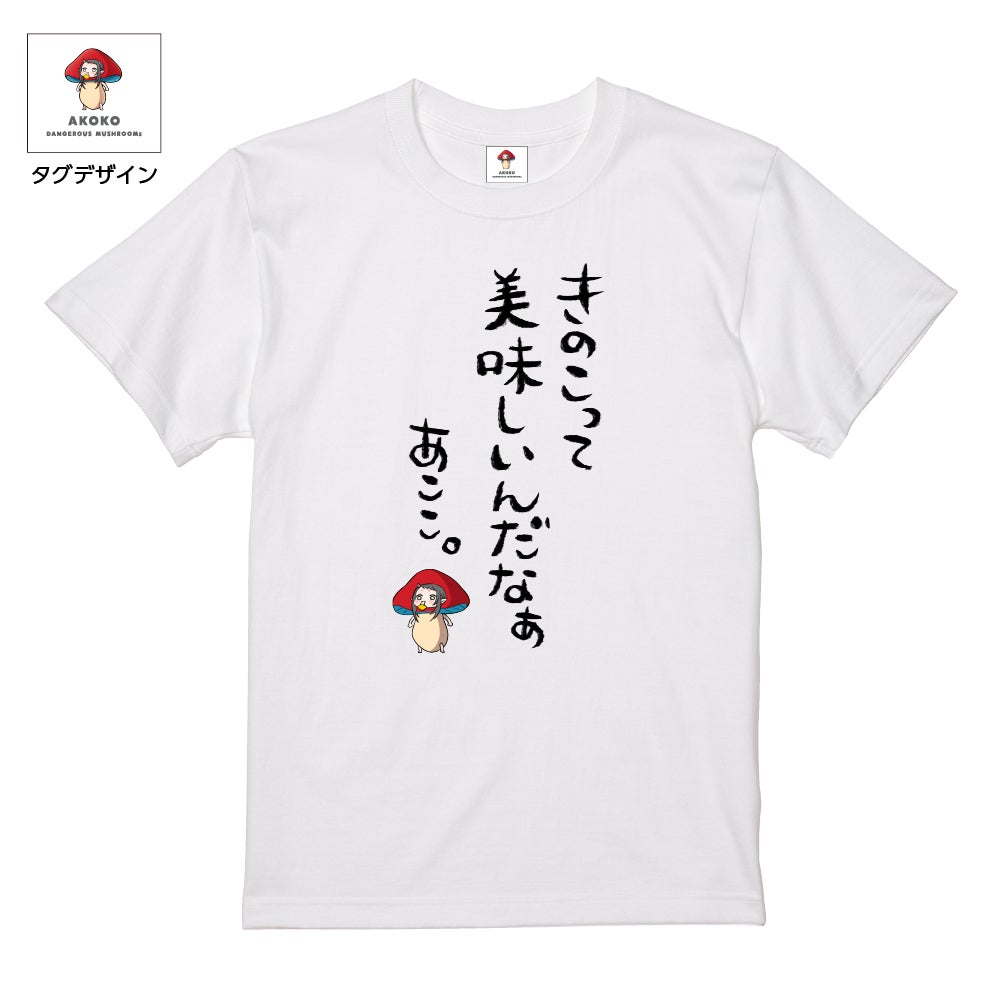 「きのこって美味しいんだなぁ」のあここTシャツ(白)です。