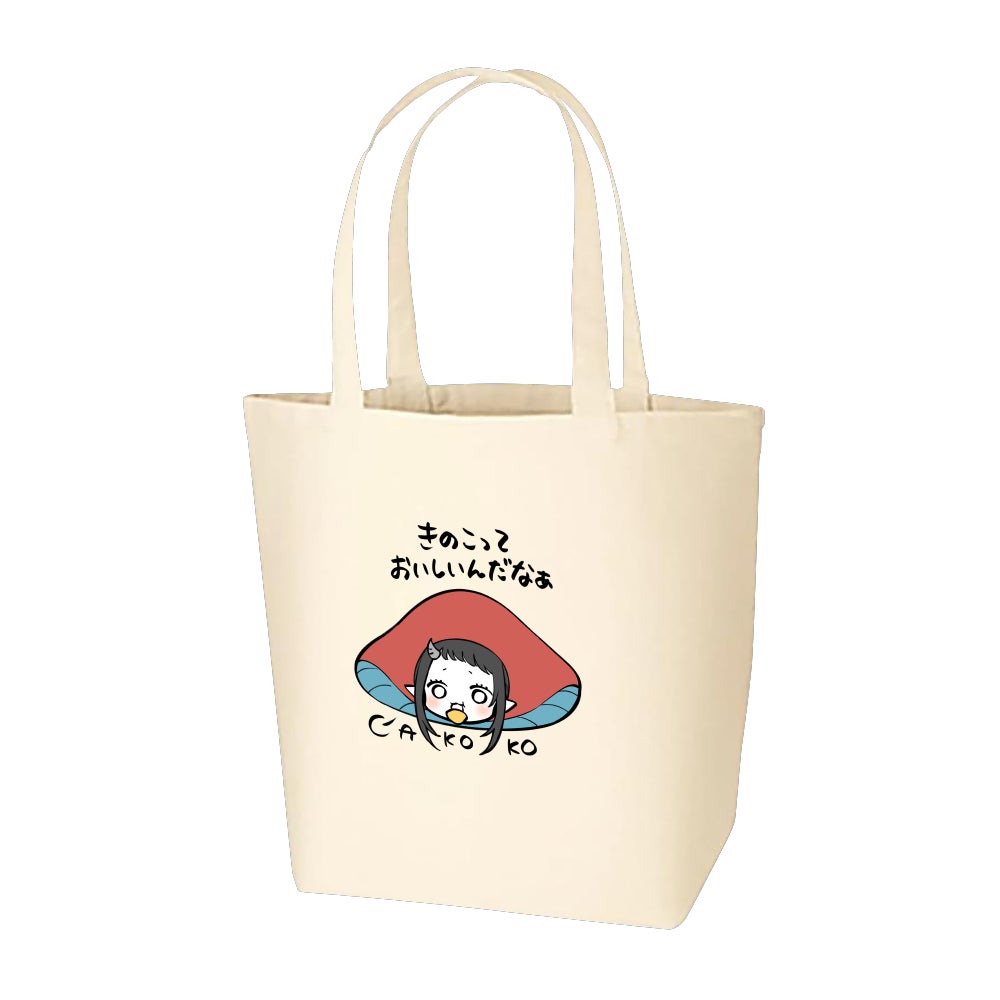 「きのこっておいしいんだなぁ」のあここトートバッグです。