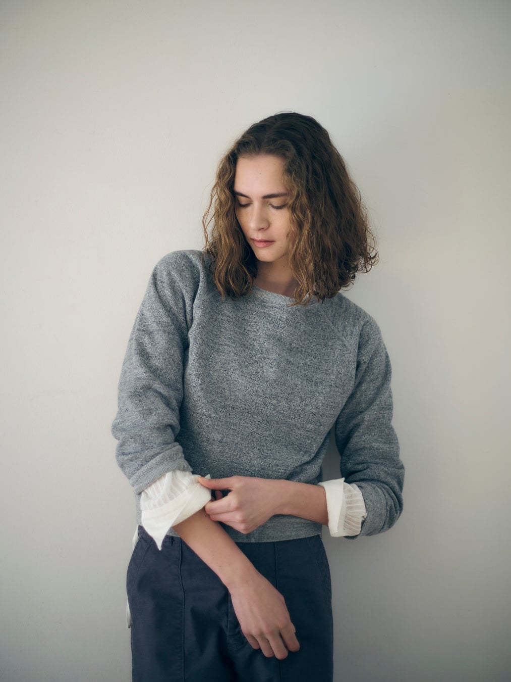 着込むほど味のある1着に仕上げたスウェットは、ムラ糸の元祖ともいわれ、上質な綿と落ち綿で作成された糸を使用し、釣り編み機でゆっくり時間をかけて編み立てました。起毛の仕方にもこだわり、ヴィンテージのような風合いを追求しました。