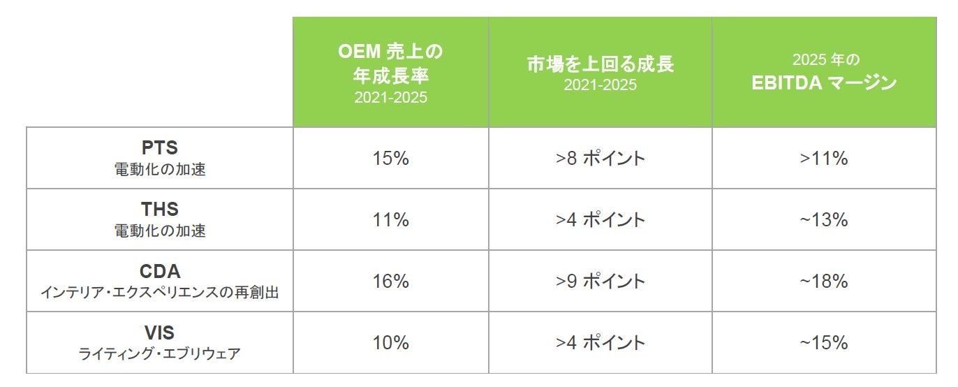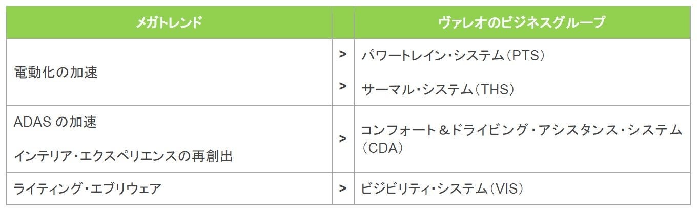 ヴァレオは、ビジネスグループごとに以下の目標を設定しています。