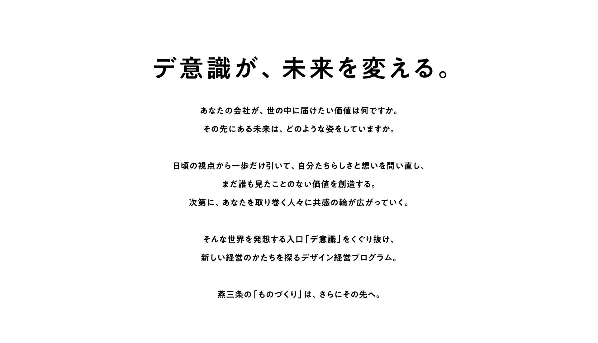 「ものづくり」で地位を確立してきた燕市・三条市のエリアが、デザイン経営を武器に、さらにその先へと成長することを目指します。