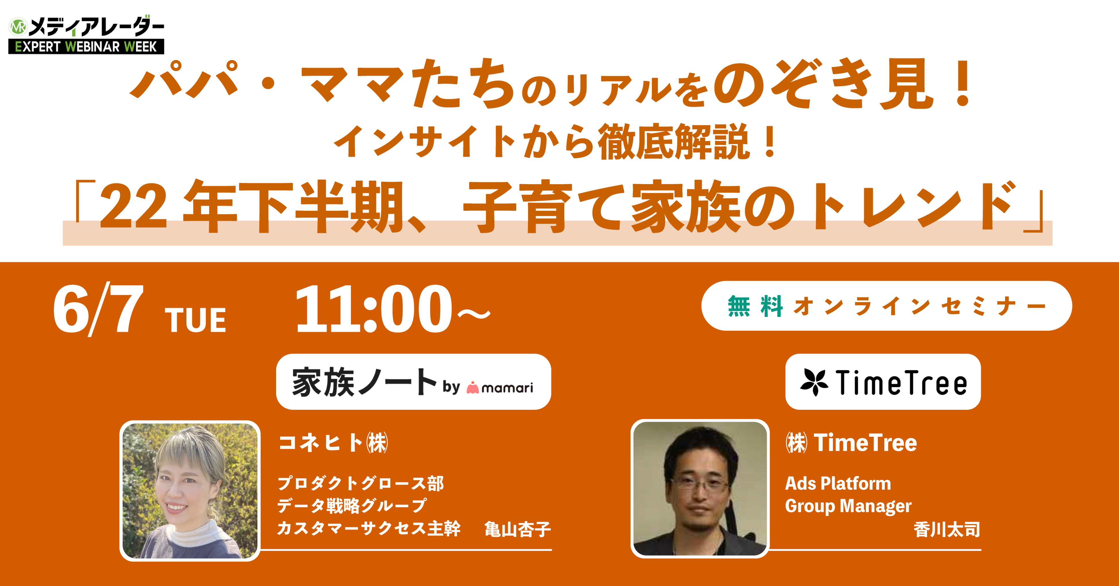 - 「パパ・ママたちのリアルをのぞき見! インサイトから観る「22年下半期、子育て家族のトレンド」を徹底解説!」6月7日(火)11:00~