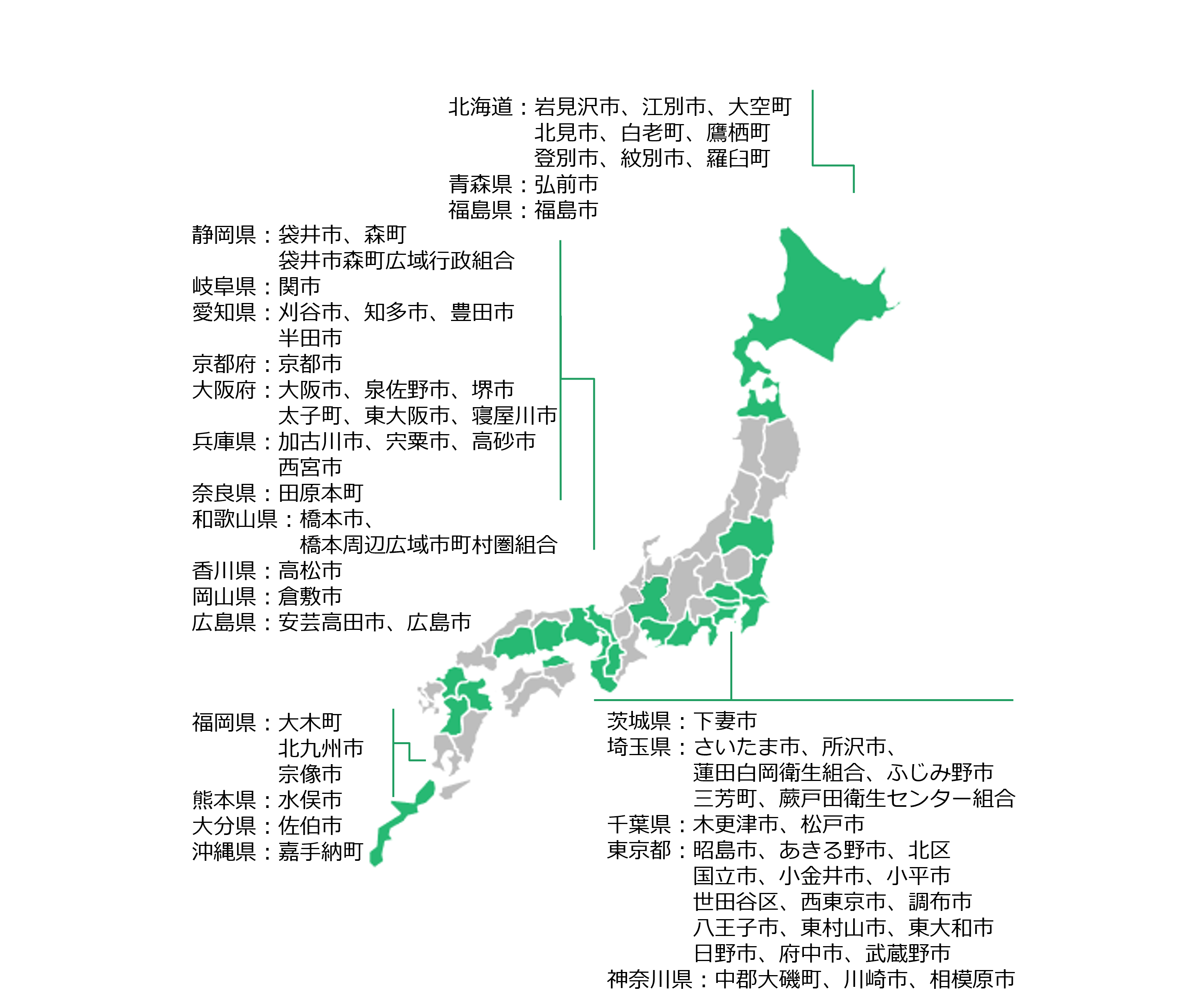 2023年1月12日時点で70箇所の自治体と協定や覚書を締結し連携し、リユースに関する啓発及びリユース事業を推進しております。