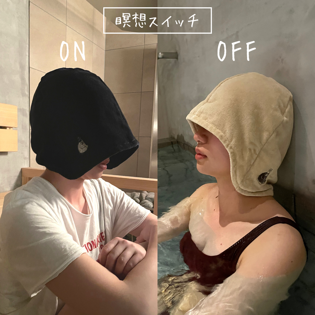 男女関わらず口元まで深く被れて周りの世界を視界から遮断できる【瞑想サウナハット】