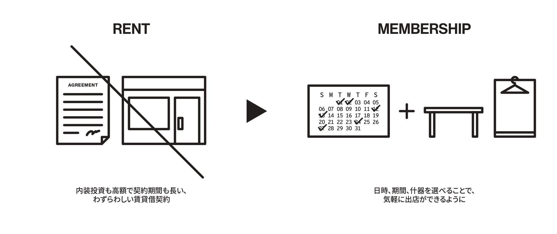 期間も場所も、什器でさえも、自分たちにとって最もふさわしいスタイルとタイミングでセレクトし、出店できる新しいリテールのあり方です。