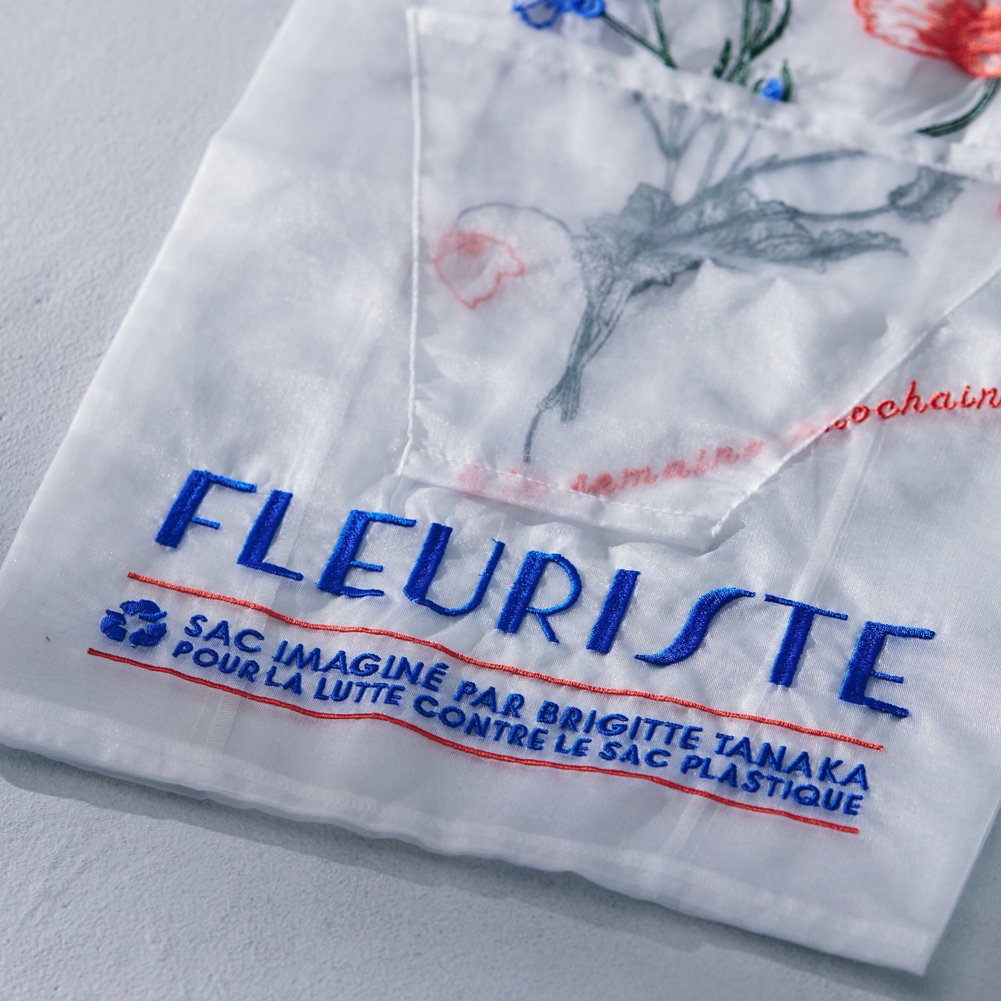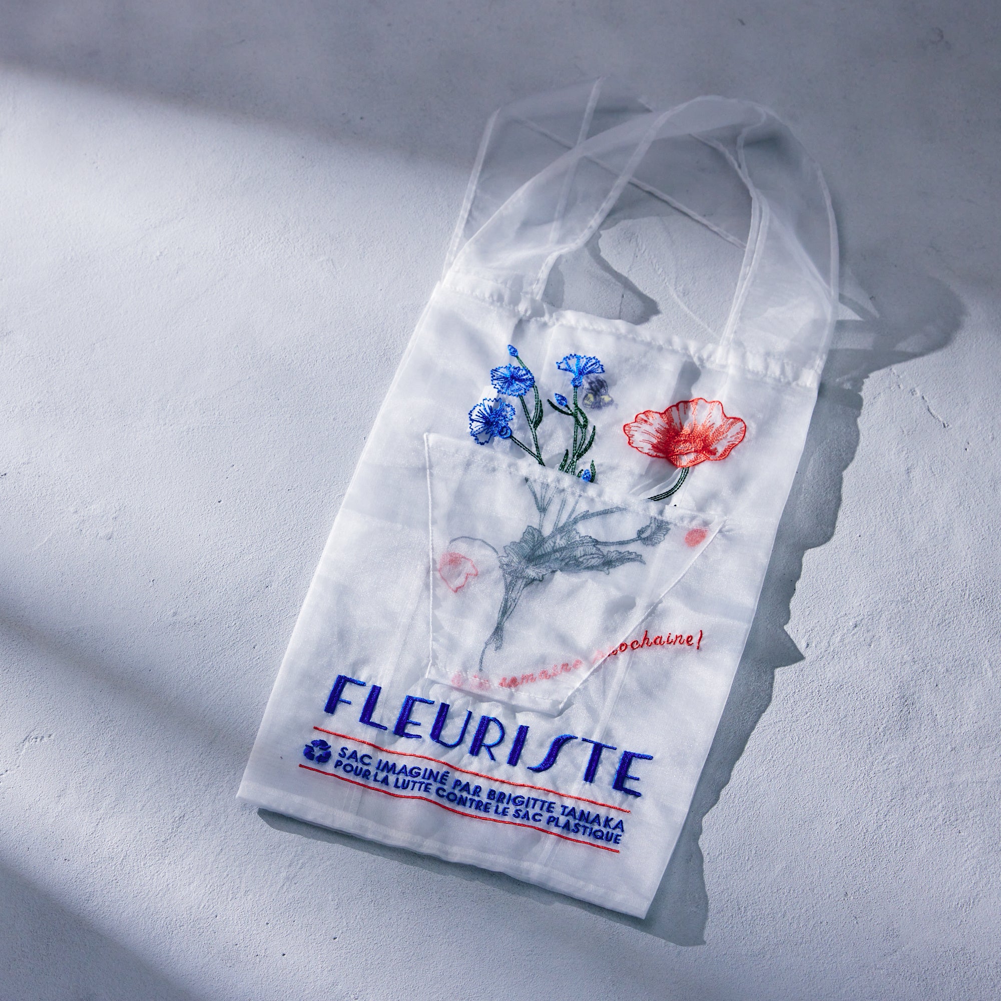 フランス人のブリジットと日本人のタナカによるブランド「 ブリジット・タナカ」。青山フラワーマーケット パリ店が昨年夏にコラボし、毎日花を持ち運びたくなるようなフラワーバッグが誕生しました。オーガンジー素材でとても軽く、手触りも心地よいこちらのバッグには花の刺繍と、"花屋さんに毎週足を運んで欲しい”という気持ちを込めてフランス語で「 à la semaine prochaine! (また来週!)」というフレーズが刺繍されています。