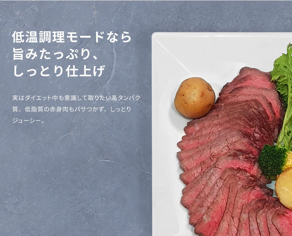 低温調理器としても使える炊飯調理器なら、サラダチキン、チャーシュー、ローストビーフも簡単!