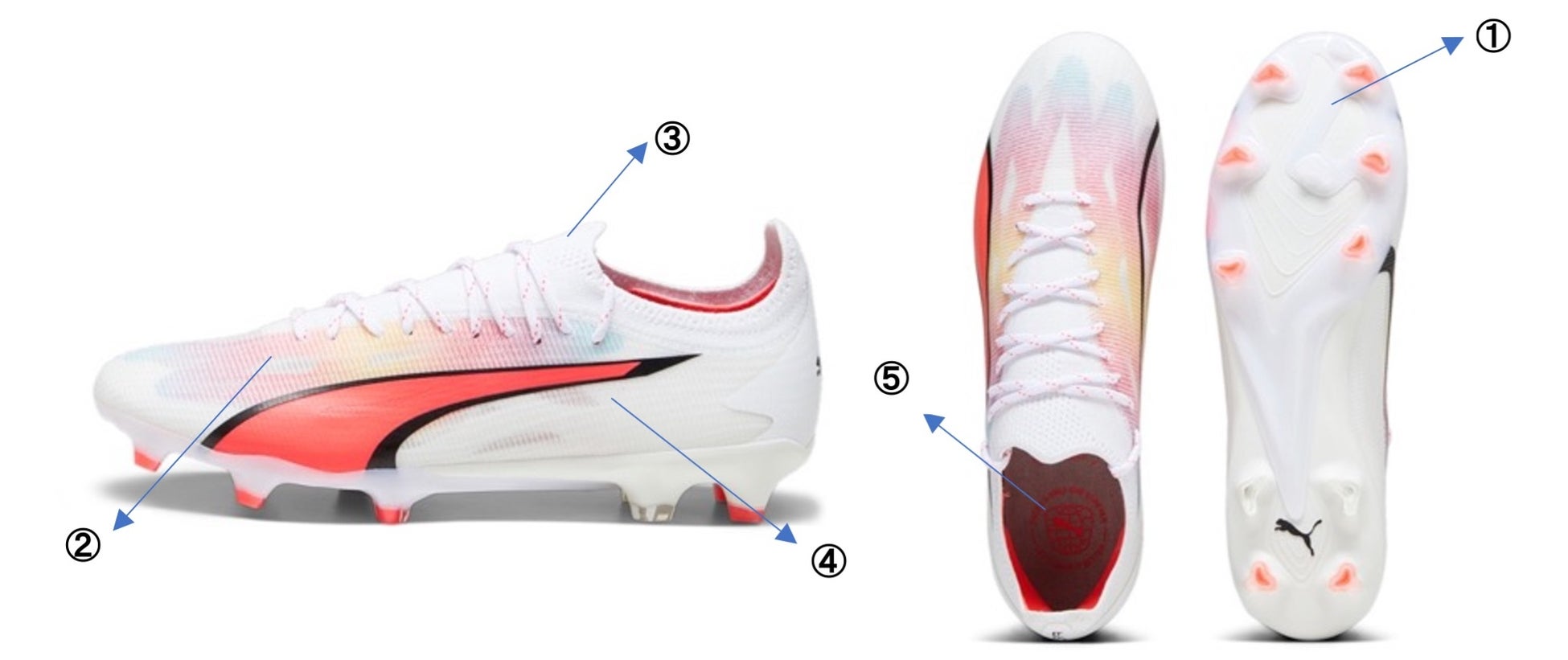 そして、新たな「ULTRA ULTIMATE」は、スマートなサイドのフォームストリップと「PWRTAPE」を視認できる半透 明のデザインを採用することで、より速さを感じられるようなデザインになっています。