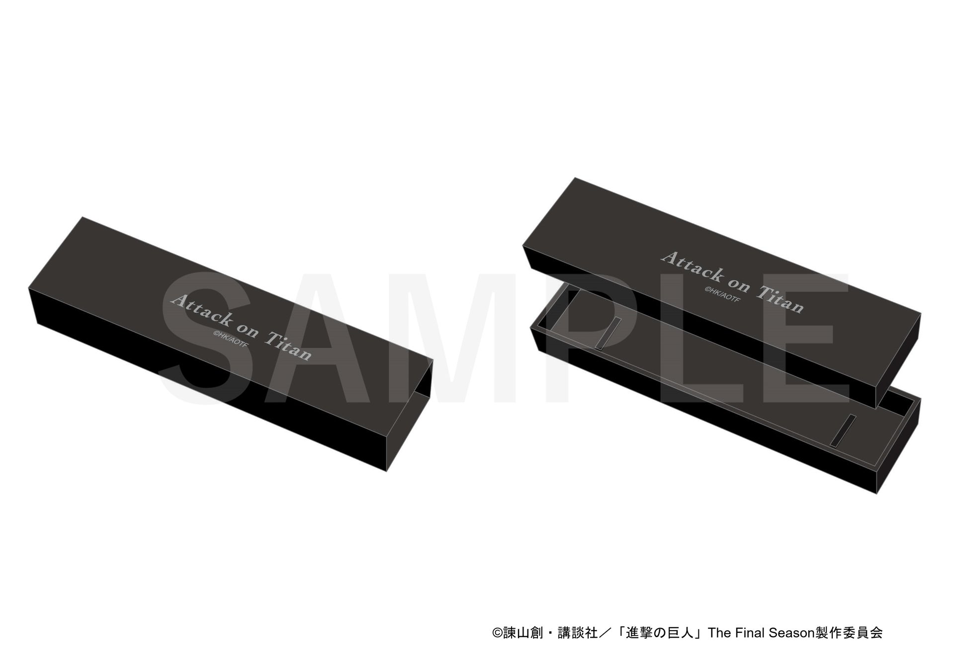 ブラックで統一されスリーブ、BOX両方に『Attack on titan』とシルバーで箔押しされ、高級感と落ち着きのあるデザインに。