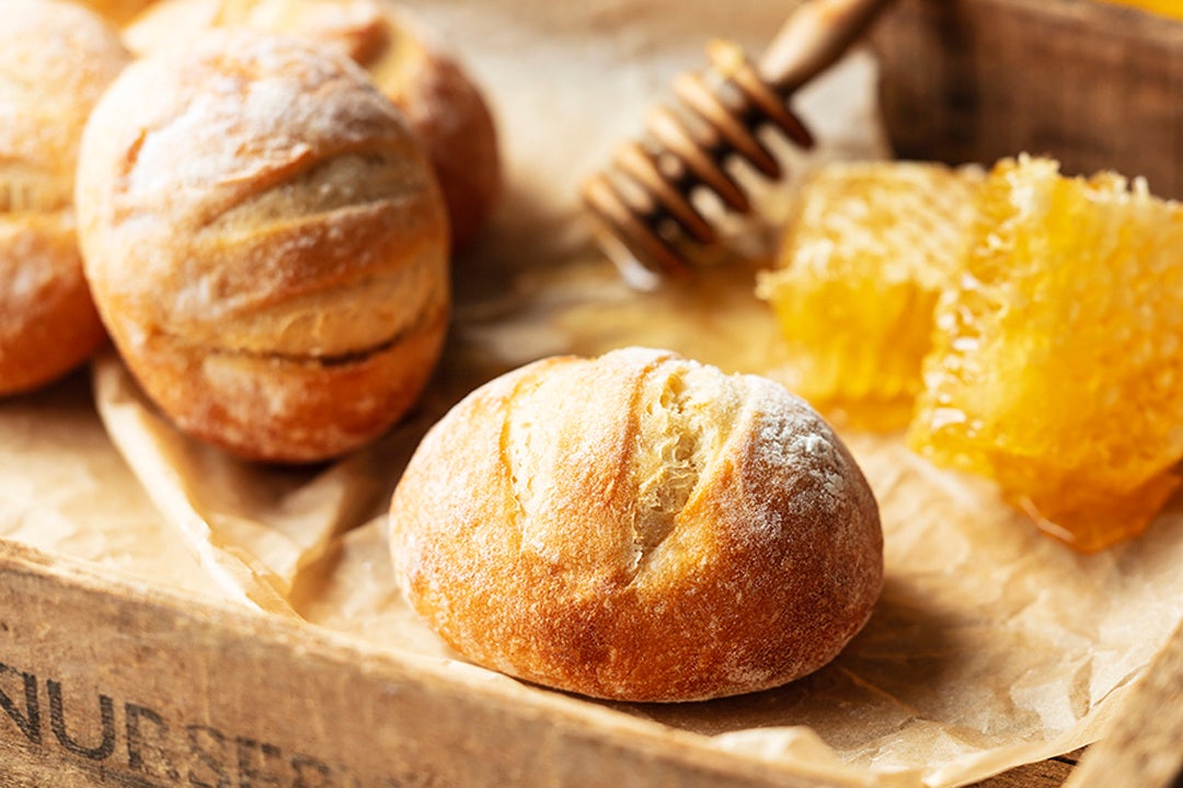 特長: ほんのり甘いはちみつ味のパン。国産豆乳を使用し、ソフトでもっちりとした食感です。そのままでも、ジャム等を付けても◎。
