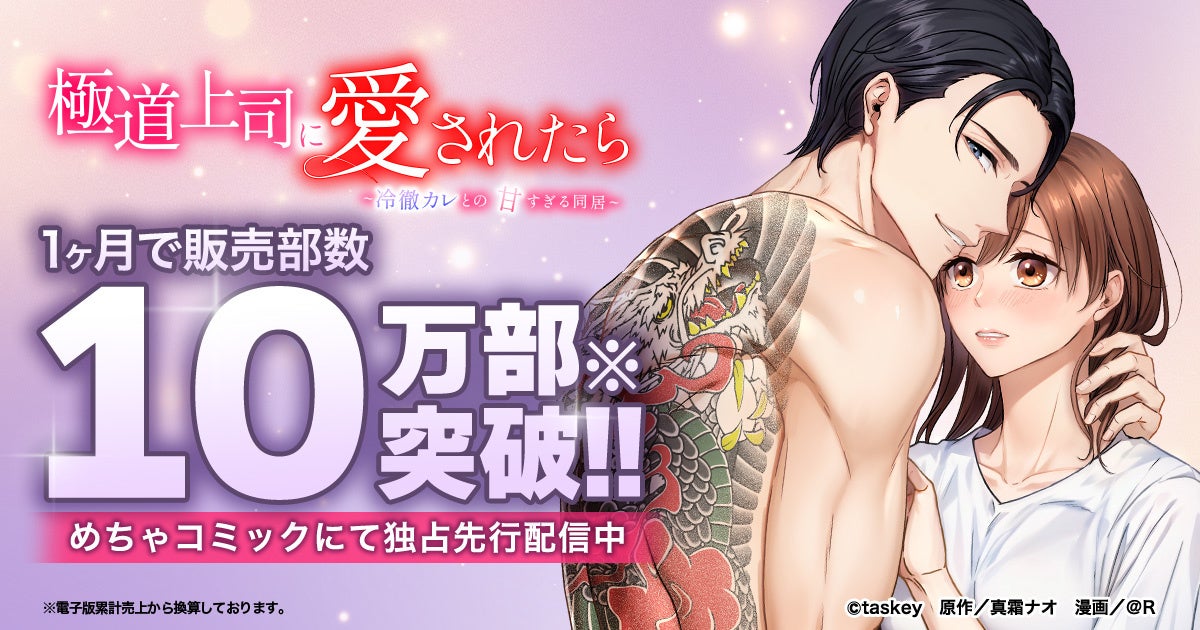 taskey株式会社(本社:東京都新宿区、代表取締役CEO:大石弘務)が発行する、マンガ『極道上司に愛されたら~冷徹カレとの甘すぎる同居~』(原作:真霜ナオ / 漫画:@R)が、2025年1月の1ヶ月間で、販売部数10万部(※)を突破しました。