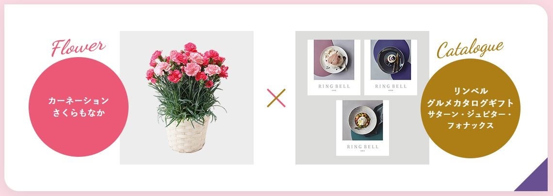 カーネーション<さくらもなか> + リンベルグルメカタログギフト<サターン> 7,480円