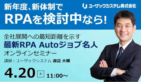 【必見】新年度、新体制でRPAを検討中なら!全社展開への最短距離を示す最新RPA「Autoジョブ名人」セミナー