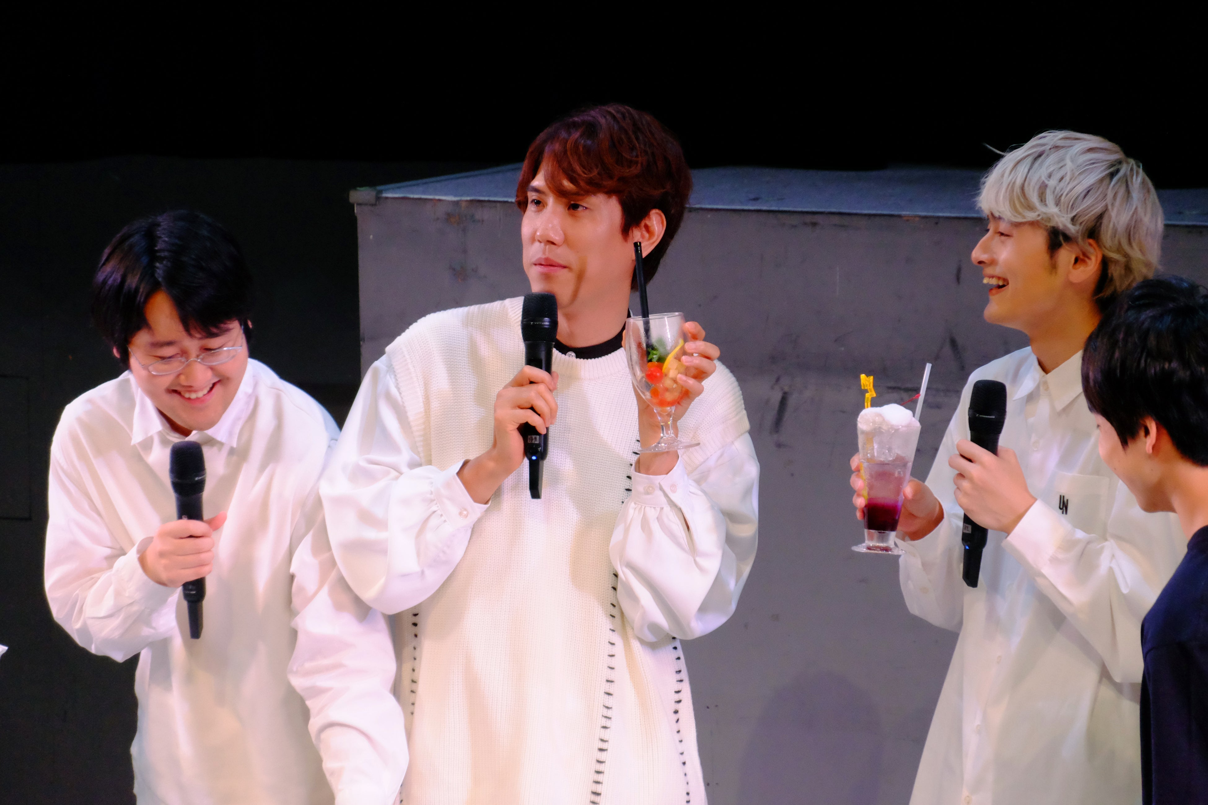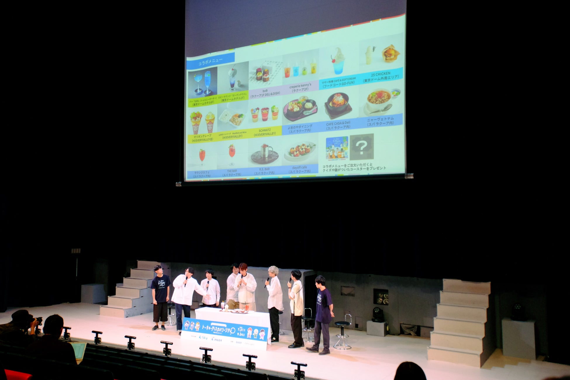 その後、東京ドームシティ内の16店舗で提供される全25種類ものイベント限定コラボメニューのうち、6品をQuizKnockメンバーが試食。レモンシロップを入れると紫色から鮮やかな青色に変化する「魔法のコットンキャンディドリンク」や、冒険・発見にちなんで「トロトロマグマ」をイメージした真っ赤なドリンク「冒険へ向け点火(イグニッション)!IGNIS ジンジャー」など、ユニークなコラボメニューが登場しました。