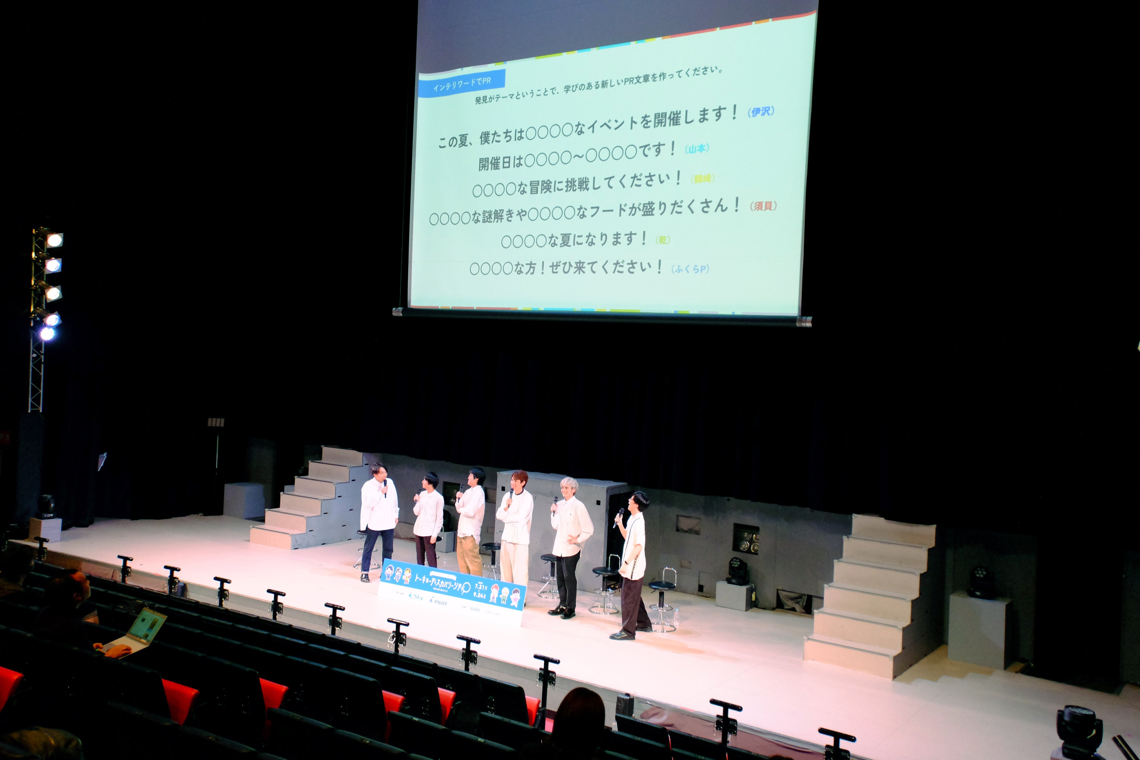 最後には、QuizKnockメンバーにとあるミッションが。そのミッションとは、穴が空いてしまったPR文章をインテリワードで埋めて、学びのある新しいPR文章を作るというもの。「『分かりやすい』PR文章の方がいいじゃん!」など野次を飛ばすメンバーでしたが、すぐに筆をとって各々がフリップに記入を始めました。