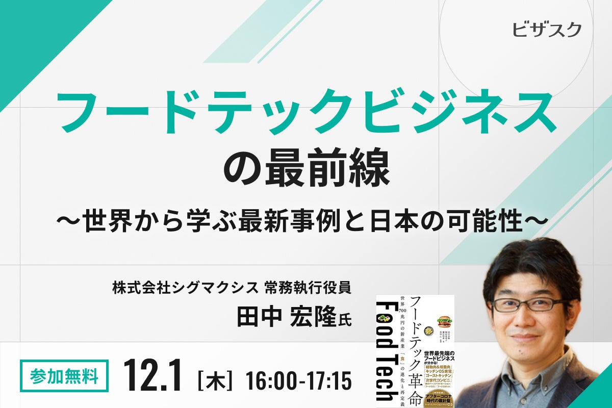 【12/1(木)16時】「フードテックビジネスの最前線〜世界から学ぶ最新事例と日本の可能性〜」無料オンラインセミナーを開催