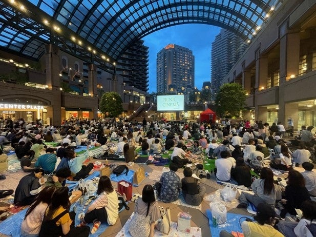 本施設内のレストランが週替わりで出店する特設のフードテラスや、センター広場に人工芝エリアと上映用スクリーンを備えた野外シネマを設置し、全19作品を上映。都会の夜景に囲まれた特別な空間で映画をお楽しみいただく特別な空間を提供しました。