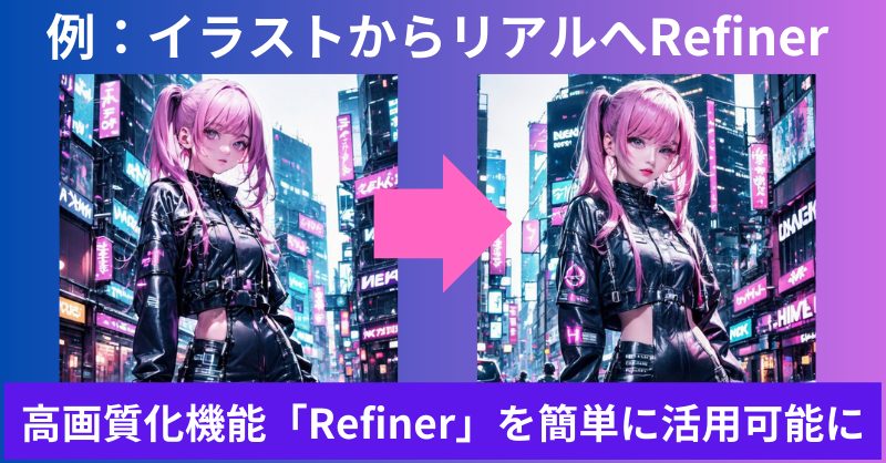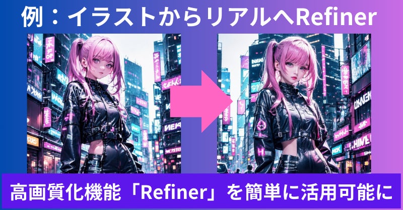 「Refiner」という高画質化のための追加生成機能が改善されました。以前は2回の手作業で生成を行う必要がありましたが、新たに「ON・OFF」の設定が一度の生成で可能となり、手間を省きながら簡単に活用できるようになりました。