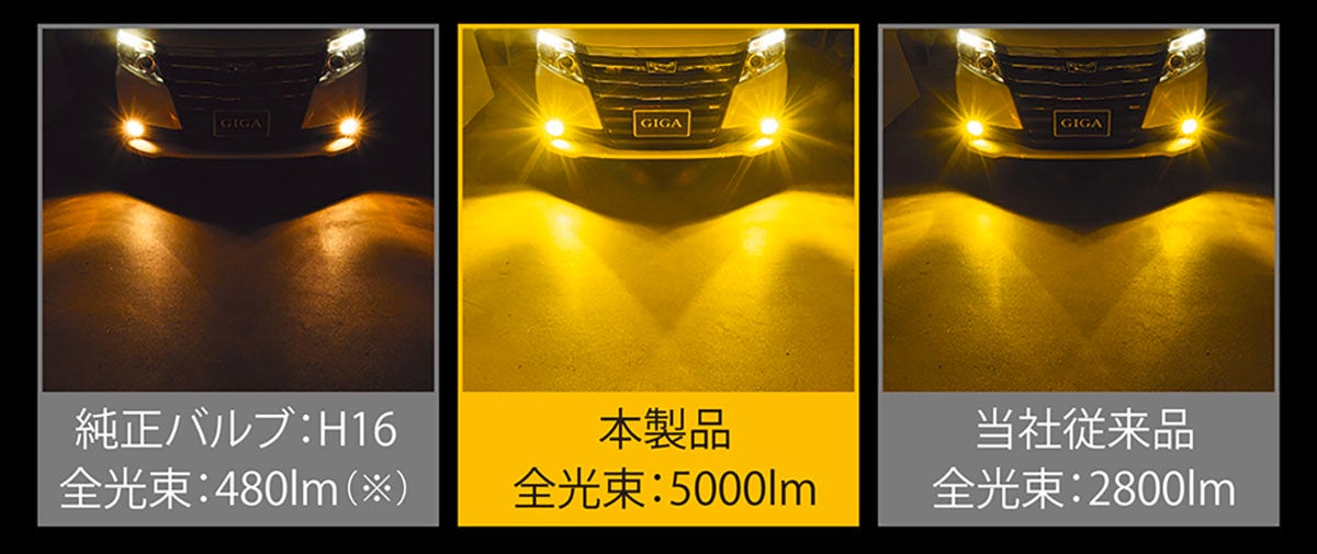 ●GIGA黄色光フォグバルブで最高の明るさ