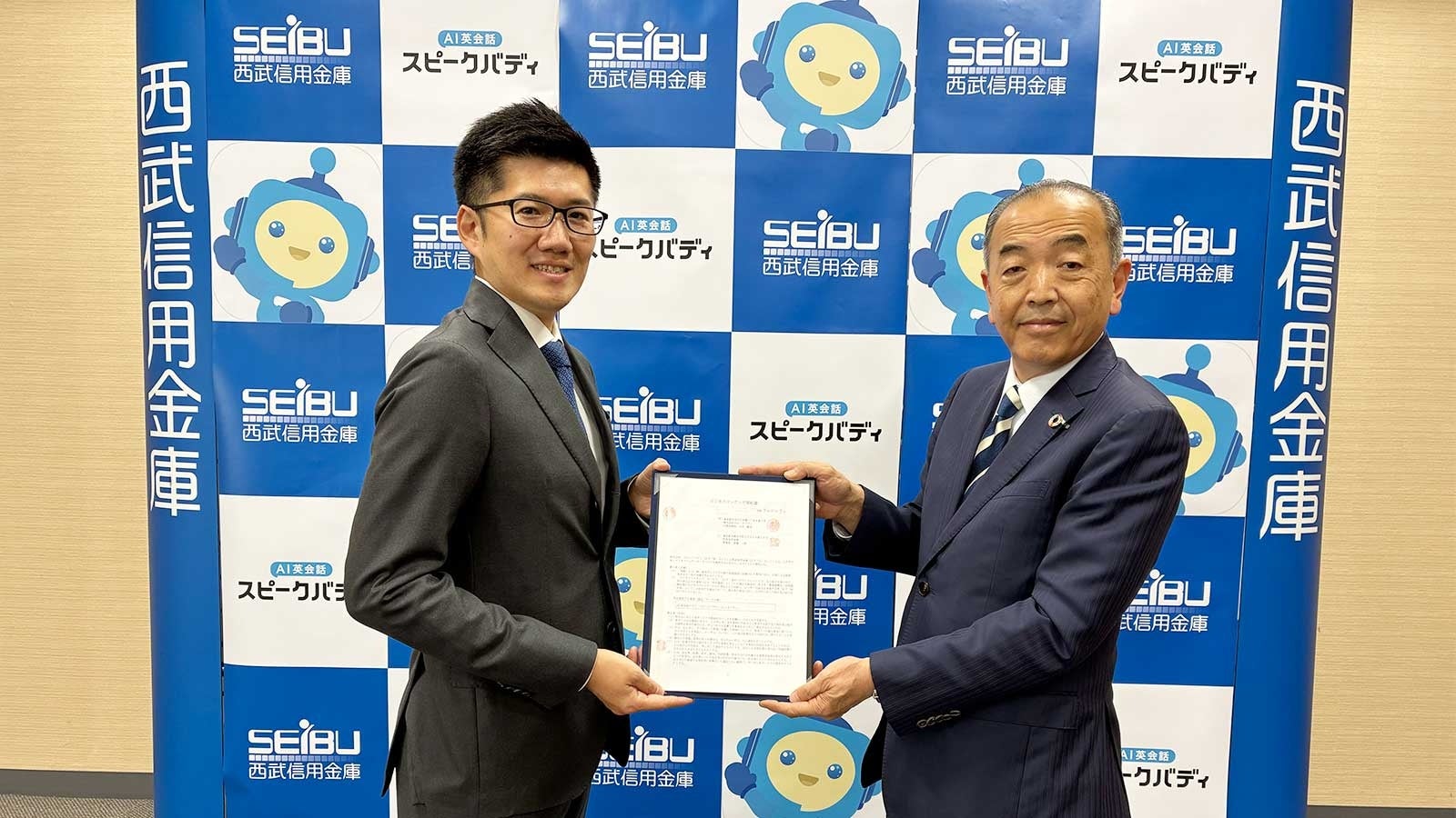 株式会社スピークバディ(本社:東京都中央区、代表取締役CEO:立石剛史、以下「当社」)は、西武信用金庫(本店:東京都中野区、理事長:髙橋 一朗)とパートナー契約を締結いたしました。この度の事業提携では、西武信用金庫の取引先企業に対し、当社が開発・運営する「AI英会話スピークバディ」の活用をご提案することにより、中小企業の持続的な成長や人材育成を共同で支援してまいります。なお金融機関との事業提携は、今回が初めてとなります。