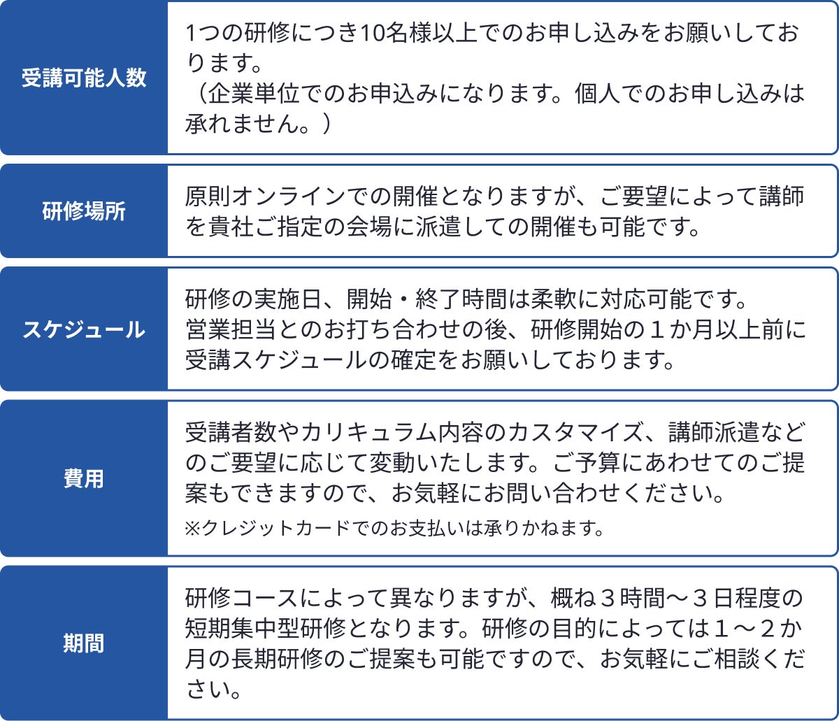 企業のニーズに合わせて、2つの形式から研修を選択できます。