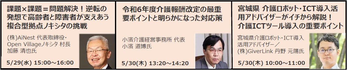 全8コース20セッションの「専門セミナー」を同時開催する。 「業界動向コース」では小濱介護経営事務所の小濱道博氏が令和6年度介護報酬改定の重要ポイントと対応策について解説。その他、介護DXやM&A、人事戦略などの重要テーマから、認知症、看取り、介護予防など介護職のスキルアップに役立つ実践的なテーマまで、介護事業所運営を支援するセミナーが目白押し。受講申込(無料)は公式サイトにて受付中。 定員間近のセッションもあるため、早めの申込をおすすめする。