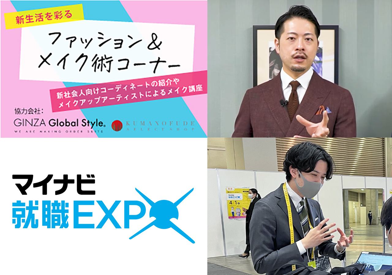 オーダースーツ専門店「GINZAグローバルスタイル」を運営するグローバルスタイル株式会社(東京証券取引所 スタンダード市場:7126、本社:大阪市中央区、代表取締役社長 田城弘志)が、3月3日(金)に東京ビックサイトで開催された「マイナビ就職EXPO」内のイベントコンテンツ「新生活を彩るファッション&メイク術コーナー」にて、24年新卒の学生に向けて新社会人のスーツマナーやビジネスカジュアルの着こなしについてのアドバイスを行いました。