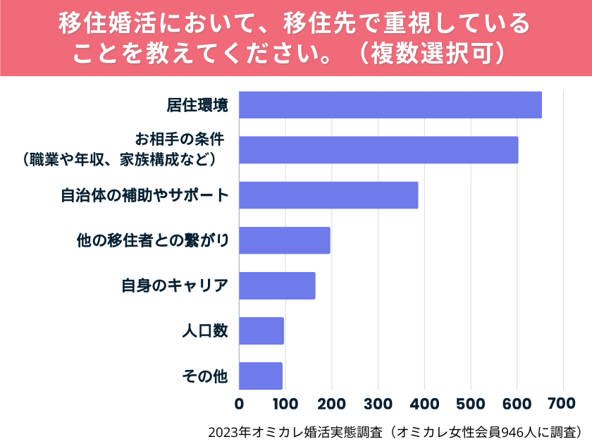 もし、あなたが移住婚活をするとしたら、移住先でどんなことを重視するでしょうか?