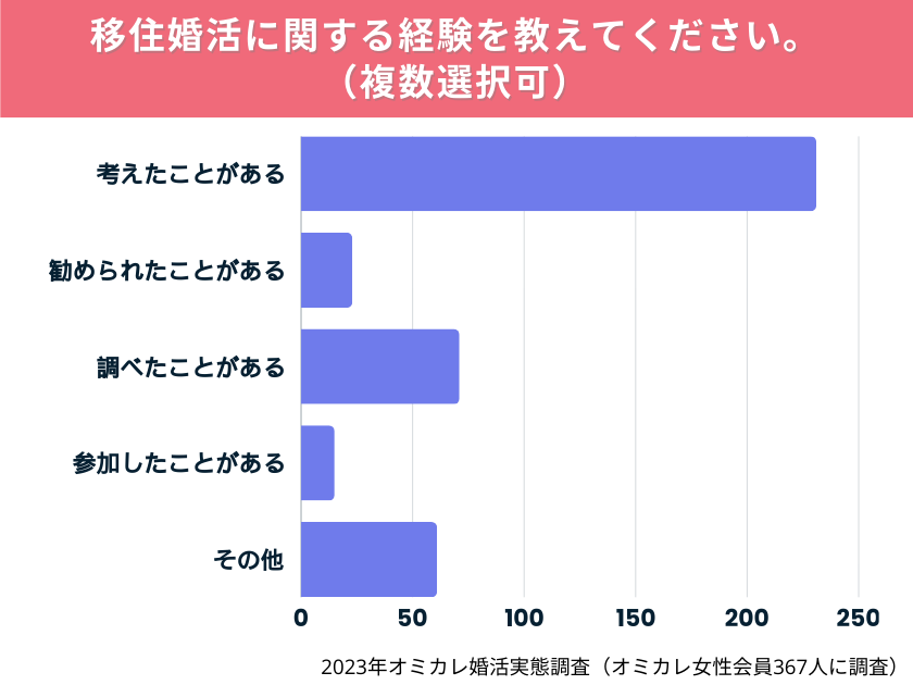 注目上昇中!婚活女性4割が移住に興味あっても実際は行動せず。いま自治体に欲しい支援は?(オミカレ婚活実態調査)