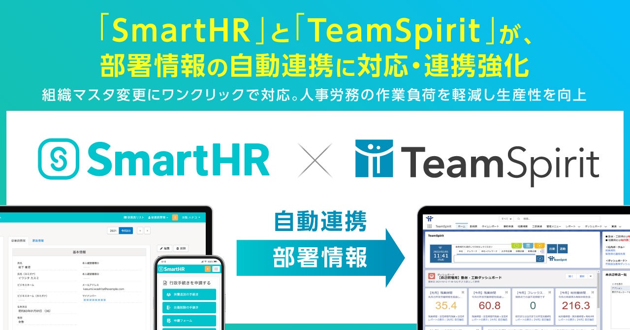 「SmartHR」と「TeamSpirit」、部署情報の自動連携に対応・連携強化